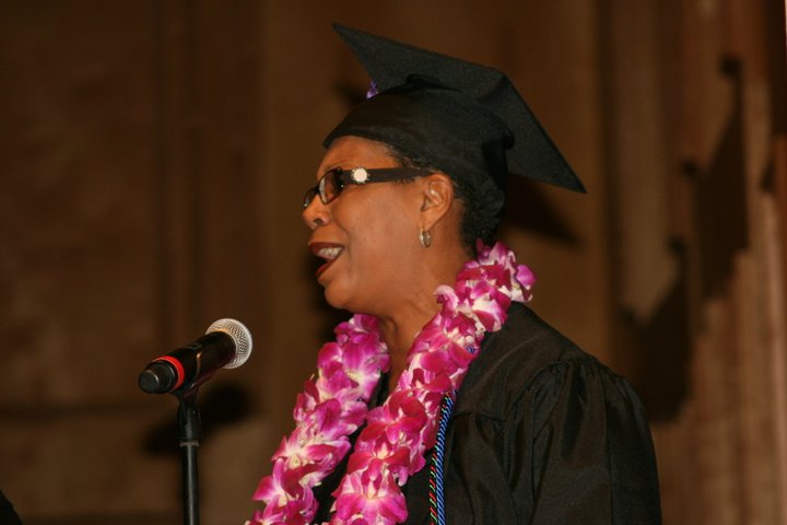 The commencement speaker was San Diego Padres CEO Jeff Moorad, who is an attorney and former sports agent. “How about that National Anthem?”, he said to graduate Marquetta Brown, who did a beautiful rendition of the Star-Spangled Banner. “Can you sing it at Petco?”